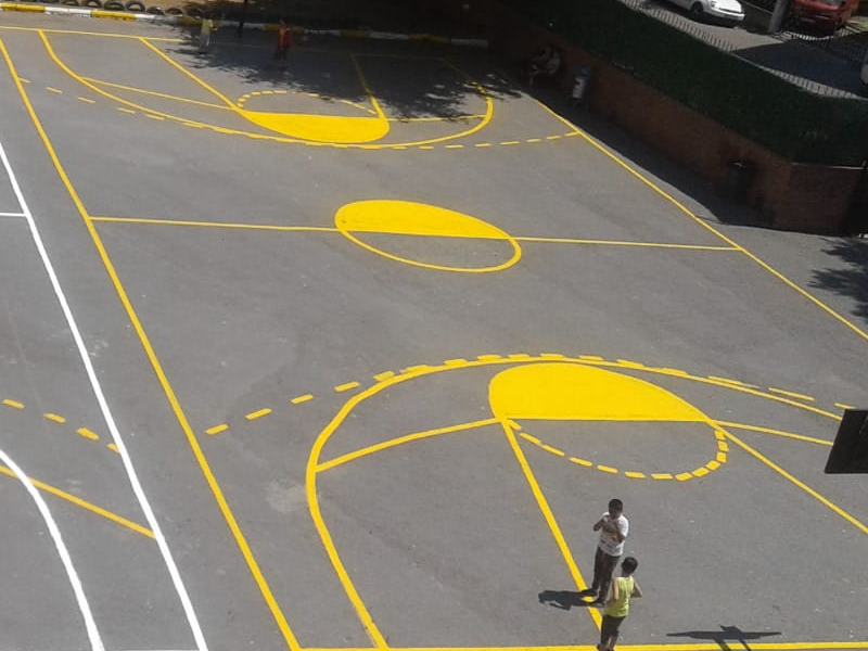 Okul saha çizgileri genellikle belirli kalıp ve ölçülere göre çizilir bu kalıp ve ölçüler ne tür okul sahası olacağına göre değişir. Okul saha çizgilerinin kendine ait özellikleri bulundurur kendi içinde bunu da okulun sahip olduğu alana veya kapladığı yüz ölümüne göre değişebilir. Zemin kaplama işlemi tamamlandıktan bir gün sonra standart ölçüler baz alınarak özenle çizilmelidir.